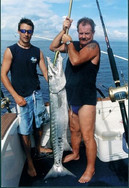 Recently we took Grant Dixon, editor of New Zealand Fishing News to the Pascoe Banks 120 Miles Northwest of Savii. These banks rise from an ocean depth of 3000 metres to 7 metres and have an area the size of Upolu. They are untouched, not fished commercially. We had a ball catching great fish. GTs, Marlin, Sailfish, Doggies, Jobbies, Wahoo an lots lots more...